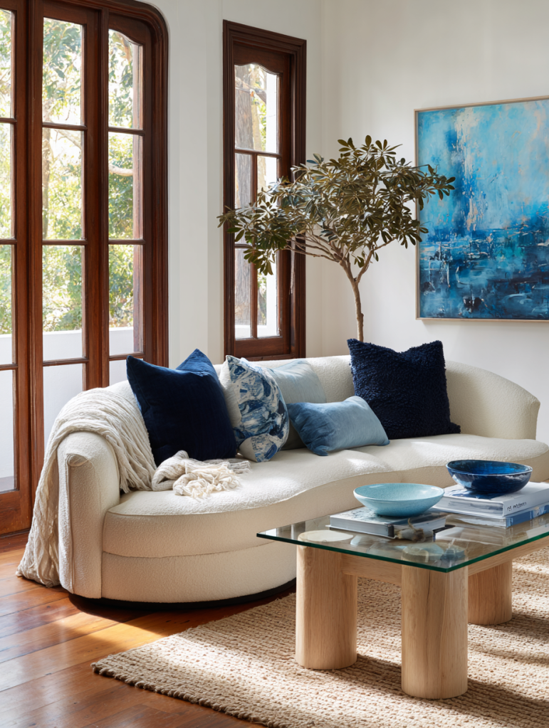 Soft velvet invites us to touch and relax. Smooth stone and brass feel sophisticated and grounding. Natural wood and woven fabrics create warmth and authenticity. By combining different textures, we make rooms that engage our senses. They feel comfortable, not just visually appealing but emotionally satisfying.
