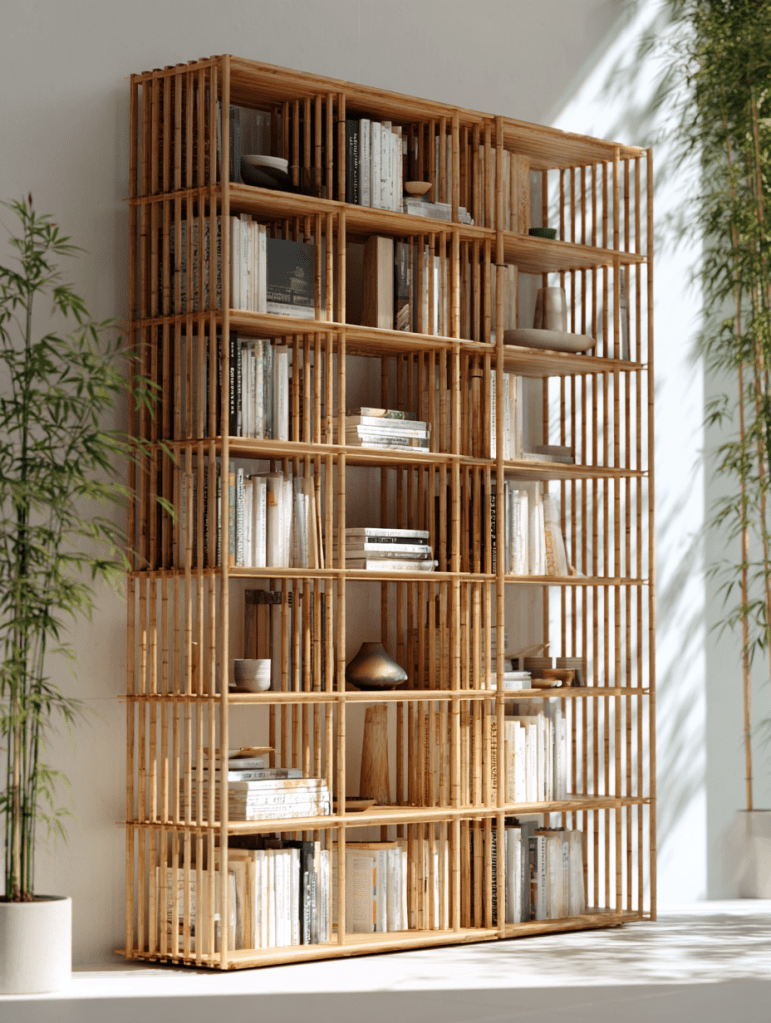 For us, choosing the right furniture is crucial. It becomes the foundation of creating a Japanese-inspired reading room. This captures the essence of Kyoto’s famous bamboo forests. We choose a tall wooden bookshelf in natural wood finishes. It is the perfect reading nook furniture to mirror the towering bamboo stalks of the iconic Arashiyama Bamboo Grove. The raw, unfinished quality of natural bamboo furniture is crucial to our selection process. Each piece must embody the authentic Japanese interior design aesthetic we want to recreate indoors.