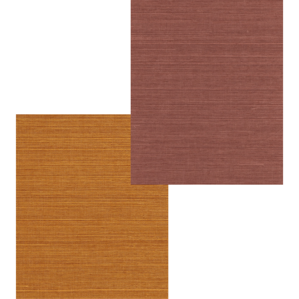 On the right, wallcoverings by John Mark Naturals, 100% made from natural sisal in Sangria and Orangutan. Sisal’s inherent texture and organic origins make these wallcoverings particularly well-suited for Mexican-inspired interiors. They also work beautifully in any space where you want to blur the line between indoors and out. They bring that grounded, earthy quality into rooms that crave an elegant connection to nature.