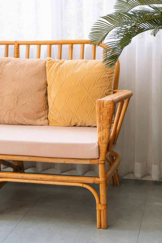 For your sofa, look for solid wood frames rather than particleboard. Choose natural fill materials like down or natural latex instead of polyurethane foam. Opt for durable fabrics like organic cotton, linen, or wool. If buying new isn’t in the budget right now, a secondhand solid wood-framed sofa with high-quality reupholstery can be more sustainable and more affordable than buying new fast furniture.